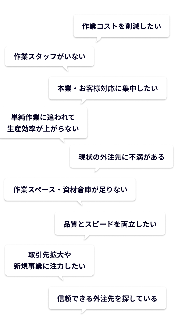短納期・大量ロット・繊細な作業など多様なニーズに柔軟に対応いたします。