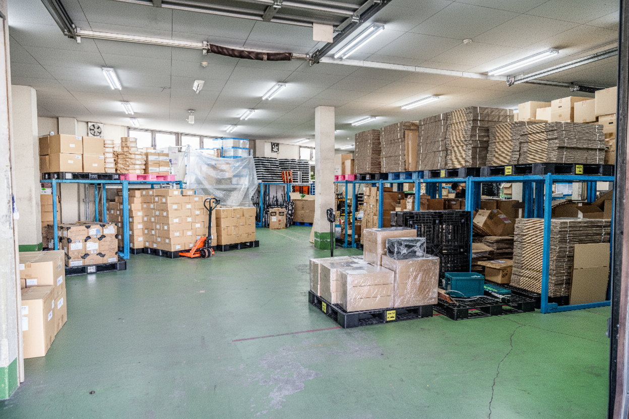 | A | 保管作業も行なっております。 物量や入出荷の頻度にもよりますが、1坪あたり月5,000円〜となっております。 |